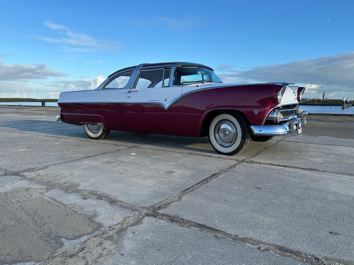 Ford Fairlane Crown Victoria 4.5 V8 Een prachtige 1955 Ford Crown Victoria 2-deurs Coupé aan, gekenmerkt door een fantastische two-tone kleurencombinatie (Pink & Wit), die perfect past bij de prachtige lijnen van deze exclusieve '55 Crown Victoria. Zowel het lakwerk als het chroom verkeren in uitstekende staat, met een diepe glans die de auto karakter geeft. Onder de motorkap vinden we een krachtige 4.5 liter V8-motor die 162 pk levert en uitstekend presteert. De automatische transmissie schakelt perfect en biedt comfortabel rijden. Interieur: Het interieur is afgestemd op de kleuren van het exterieur, wat zorgt voor een harmonieuze uitstraling. Deze Ford Crown Victoria is voorzien van diverse kenmerken, waaronder een automatische transmissie, doorlopende zitbank, originele velgen met chromen doppen, een originele radio, fender skirts en een dubbel uitlaatsysteem. Al met al is dit een echte Amerikaanse blikvanger die uitnodigt voor plezierige ritjes - een voorbeeld van ""the American way of drive"". De edele brede white wall banden met prachtige originele wieldoppen maken de Fairlane een echte eyecatcher. De staat van de Ford Fairlane is uitstekend en werd Frame Off gerestaureerd. De Tropical Rose en Snowshoe white lak is in een uitstekende staat en glanst prachtig. Het chroom is als nieuw en in een uitstekende staat. Carrosserie/Lakwerk: Netjes onderhouden, het lakwerk toont nog zeer goed met gebruiks- en ouderdomssporen. Ook het chassis is nog in een nette conditie. De moldings, rvs lijsten en lak zijn nog ik keurige top conditie. Technisch: Grote beurt gehad waar alle vloeistoffen zijn vernieuwd, motorisch geheel nagekeken en 100 procent in orde, de automatische transmissie in orde en schakelt erg soepel, er is ook veel onderhoud uitgevoerd en verbeteringen aangebracht. De 4.5 liter V8 motor blubbert erg mooi en heeft 162 PK. De Fordomatic automatische versnellingsbak schakelt perfect en zacht zoals het hoort voor een auto uit deze jaren. Het interieur komt in dezelfde kleur als het exterieur en is in een zeer goede staat en uiterst comfortabel, ook de deurpanelen zijn nog in super mooie staat. De knoppen en hendels in het interieur werken allemaal naar behoren. Zowel het lakwerk als het chroom verkeren in uitstekende staat, met een diepe glans die de auto karakter geeft, de auto heeft geen roest, vrijwel nooit aan gelast, originele vloer. Kortom een iconisch model uit de lange geschiedenis van de Ford die er niet alleen fantastisch uitziet maar ook een genot is om mee te rijden. Documenten NL kenteken, af te halen in Bruinisse, Nederland.