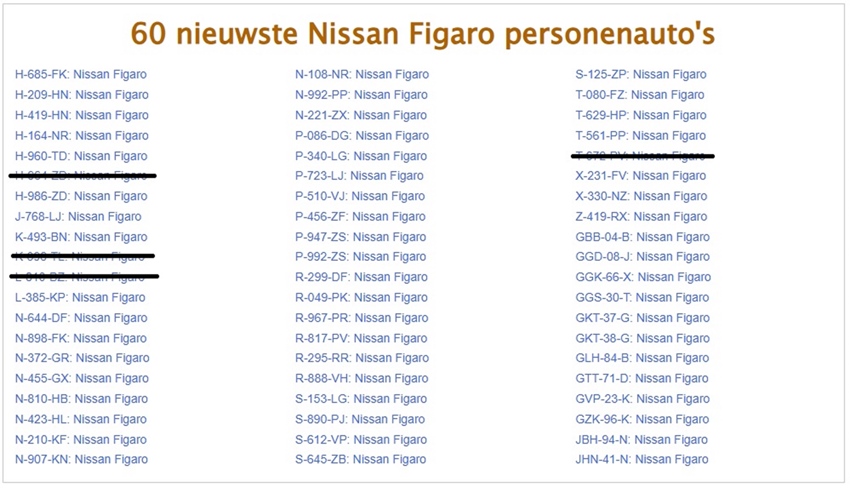 Mocht U twijfelen aan ons marktaandeel als de enige echte Figarospecialist, bekijk dan even de laatste foto van de site voertuigzoeker.nl Van de 60 laatst geregistreerde Figaros in NL zijn er 56 van ons bedrijf afkomstig…..en dan tellen we de inmiddels geëxporteerde Figaros niet mee