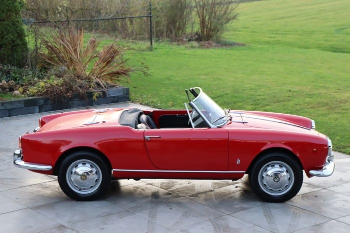 Alfa Romeo Giulietta Spider 1300 1956 • Schitterend ontwerp van Pininfarina • Fraaie kleur 'Alfa Rosso' • Skai-lederen zwart interieur met rode piping • In bezit van laatste eigenaar sinds 2006 • Zeer originele staat • Cabrioletkap vernieuwd • Professioneel gepoetst in december 2025 EXTERIEUR Stelt u zich eens voor: een Alfa Romeo Giulietta Spider; één van de meest iconische Alfa Romeo's ooit gebouwd, in de juiste kleur 'Alfa Rosso'. Deze 'oer' Spider werd al gebouwd in 1956 en is in 2003 geïmporteerd naar Nederland, waarna hij in 2006 in bezit is gekomen van de laatste liefhebbende eigenaar. De auto verkeert in een zeer originele staat en heeft de tand der tijd in bijna 70 jaar goed doorstaan. Het lakwerk is in het verleden opnieuw gespoten en heeft lichte gebruikerssporen, is niet perfect evenals het chroomwerk en rubbers. Het chrome laat her en deriets los. De auto is in december 2025 professioneel gepoetst, maar om de auto optisch helemaal goed te verfraaien kan het lak- en chroomwerk iets verbeterd worden. De 15" velgen zijn voorzien van sierwieldeksels. Daarnaast staat de Alfa op 4 goede Toyo banden. Het zwarte canvas cabriolet-dak is vernieuwd en verkeert in een uitstekende staat. INTERIEUR Het fraaie skai-lederen interieur is prachtig tweekleurig uitgevoerd in zwart met een contrasterende piping. Het leder komt terug in de deuren en is overal vrij van beschadigingen. Ook het overige interieur verkeert in een zeer fraaie en originele staat. Op het fraaie 2-spaaks stuurwiel pronkt de modelnaam 'Giulietta'. De klokjes zijn pure meesterwerken: klassieke Italiaanse woorden met een goudkleurige achterzijde. Dit contrasteert mooi met het rode dashboard. TECHNISCH Ook de motorruimte is grondig schoongemaakt en ziet er droog uit. Hier ligt de 1.290 cc 4-cilinder motor, die gekoppeld is aan een handgeschakelde 4-versnellingsbak. Met 81 pk is de auto relatief snel te noemen voor de jaren "50. Dankzij het lage gewicht van ruim 900 kg en achterwielaandrijving is het een heerlijke rijdersauto: of u nu wilt cruisen rond het Comomeer of bochtenwerk wil zoeken in de Alpen: deze Alfa zal een lach op uw gezicht toveren. Een sfeervollere auto kunnen wij ons haast niet voorstellen. De auto start, rijdt, remt en schakelt goed.