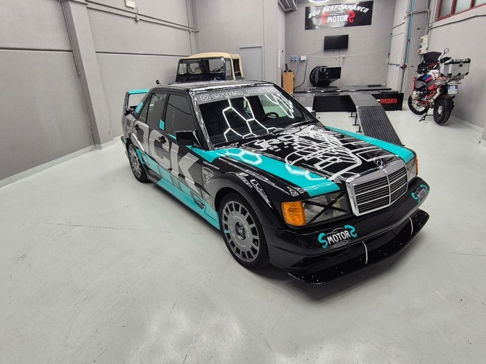 Special Restomod op basis van Mercedes 190E. Motore 5.5 V8 AMG Kompressor, volledig gereviseerd en aangepast aan het project, met een op maat gemaakte programmeerbare Megasquirt-elektronica die de mogelijkheid biedt om de mappings en instellingen in realtime aan te passen, afhankelijk van het gebruik. Vermogen 600 pk en 750 Nm. Handgeschakelde 6-versnellingsbak met quick shifter, achterwielaandrijving met sperdifferentieel en geschikte assen voor het vermogen. Raceveringen opnieuw ontworpen en aangepast aan het project. Lichtmetalen velgen OZ in DTM-stijl van 18 inch met verschillende banden. Remsysteem met zwevende schijven aan de voorzijde en monoblock remklauwen met 4 zuigers van Mercedes AMG, achter schijven met dubbele kalipers (één voor de hydraulische handrem en één voor de gecombineerde remfunctie). Impeccabele carrosserie, kit evo 2 in glasfiber trouw aan het origineel, momenteel gemonteerd met een DTM-stijl livery in de kleur 'tiffany' (foto's met en zonder aanwezig), carrosseriekleur zwart metallic origineel Mercedes. Volledig herzien interieur, zwarte leren stoelen met rode stiksels, origineel AMG, afgeleid van Mercedes A45 AMG, perfect passend en functioneel. Dashboard met flockering in raceauto-stijl, digitale sportinstrumentatie. Vervoer gemaakt als showauto, zorgvuldig in de kleinste details en winnaar van verschillende prijzen, zijn restauratie- en transformatiearbeid ongeveer een jaar geleden voltooid. Sindsdien is de auto alleen gebruikt voor evenementen, beurzen en opnames. Een auto die zowel op de weg als op het circuit te gebruiken is, zeer krachtig. De auto was de hoofdpersoon in een aflevering van een nieuw televisieprogramma genaamd 'Better Call Roby' dat op kanaal 59 Motortrend werd uitgezonden op 1 december 2025. De aangebrachte wijzigingen aan de auto worden niet vermeld op het kentekenbewijs, daarom is het in het register een gewone 190E. Beschikbaar voor elke proef en voorafgaande bezichtiging op afspraak via Catawiki, in de stad Savona in Italië.