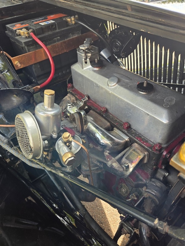 De body is nog altijd roestvrij en de zwarte lak heeft een schitterende glans. De auto heeft nauwelijks gebruikssporen en een zeer mooie patina.