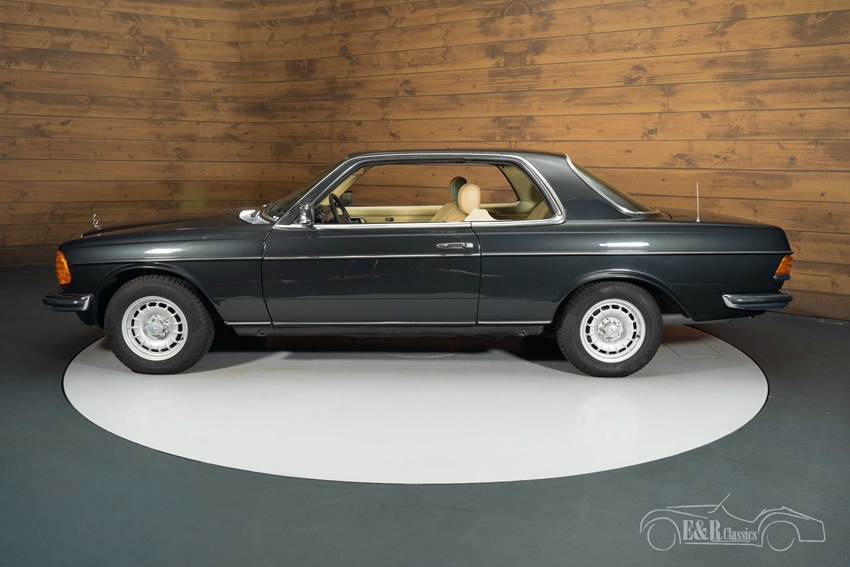 Mercedes-Benz 280 CE in Blau Schwarz metallic te koop Het uiterlijk van deze 280 CE wordt gekenmerkt door stijlvol Blau Schwarz metallic lakwerk dat prachtig combineert met de klassieke kroonkurk velgen. Het strakke, chroomrijke koetswerk oogt puur en ongecompliceerd, precies zoals een echte W123 hoort te zijn. Binnenin wacht een warm beigekleurig interieur dat bijzonder netjes bewaard is gebleven en perfect aansluit bij de elegante buitenkant. De aanwezigheid van een schuifdak, houten accenten en de karakteristieke Mercedes-styling creëren een sfeervol en luxueus geheel. Een prachtig verzorgde coupé die uitnodigt tot ontspannen toertochten in stijl.