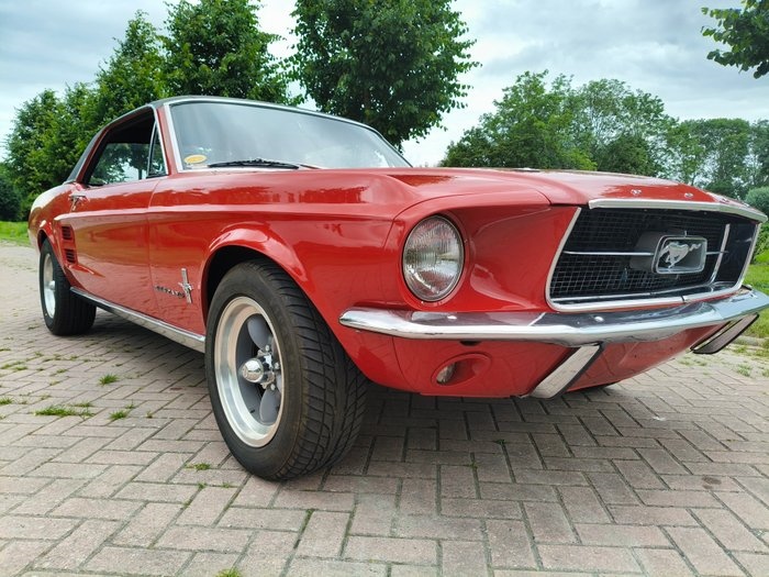 1967 Ford Mustang Hardtop Coupe ALGEMEEN: Te koop aangeboden: 1967 Ford Mustang V8 289 4-Speed – Amsterdam built. Een bijzonder exemplaar van de iconische Mustang, uitgevoerd in rood en voorzien van een handgeschakelde 4-versnellingsbak. Deze Mustang combineert klassieke lijnen met krachtige prestaties en is extra speciaal dankzij zijn Europese afkomst. Een echte liefhebbersauto die rijplezier en waarde behoudt in één biedt. CARROSSERIE & LAKWERK: De carrosserie verkeert in goede conditie en is voorzien van een nette Europese laklaag (EU paint). De rode kleur benadrukt de sportieve lijnen van de '67 Mustang en geeft de auto een krachtige en klassieke uitstraling. Het koetswerk oogt strak en verzorgd, en de aanwezigheid van American Racing wielen versterkt het sportieve karakter. Er is vorige week een NIEUW Vinyl dak geplaatst en er is GEEN roestvorming op het dak geconstateerd! TECHNISCH: Onder de motorkap ligt de betrouwbare en krachtige 289 V8, gekoppeld aan een handgeschakelde 4-speed transmissie – een geliefde combinatie die zorgt voor een pure muscle car-ervaring. Voorzien van double exhaust voor dat onmiskenbare V8-geluid. Daarnaast uitgerust met power steering en power disc brakes, wat zorgt voor extra rijcomfort en veiligheid. INTERIEUR: Binnenin tref je een klassiek Mustang-interieur met onder andere een originele center console. De stoelen en bekleding maken een nette indruk en sluiten goed aan bij de uitstraling van deze sportieve coupé. DOCUMENTEN: Wordt geleverd met de benodigde documentatie die registratie in Europa mogelijk maakt. Exportdocumenten kunnen op aanvraag verzorgd worden. AFHALING: De auto kan na afloop van de veiling worden opgehaald in [plaats invoegen]. Transport kan in overleg geregeld worden. OVERIGE INFORMATIE: De AN-code is geen gangbare code voor een Mustang geproduceerd in de Ford-fabriek in Amsterdam; het chassisnummer van Mustangs die tussen 1965 en 1967 in de Amsterdamse fabriek werden geassembleerd, bevat wel een N-code. Deze Nederlandse Mustang-productie is een interessant deel van de geschiedenis van het model, zo meldt AutoRAI.nl. Wat de N-code betekent ; Productie Nederland Een interessant onderdeel van de geschiedenis van een van de populairste Amerikaanse sportauto's aller tijden. Ford had ook fabrieken in andere landen, maar alleen de Nederlandse Mustang-productie had een specifieke N-code. In de Verenigde Staten werden Mustangs geproduceerd, maar de codes waren anders dan in Nederland. In Nederland werd bijvoorbeeld de A-code gebruikt voor een krachtige V8-motor en de C-code voor de basis V8-motor.