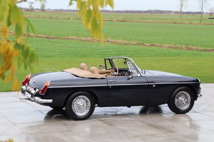 MG B 1.8 Roadster 1973 - Prachtige diepblauwe kleur met beige 'Mohair' softtop - Zeer fraai beige interieur met lederen bekleding, Moto-Lita houten stuurwiel en verwarming - Originele chroombumpers - Klassieke chromen spaakvelgen - Nederlandse registratie sinds 2003 - Origineel en roestvrij exemplaar - Technisch goed onderhouden - Elektrische ontsteking en massa-schakelaar HISTORIE/DOCUMENTATIE De MG B: een populaire sportauto zoals hij hoort te zijn: lichtgewicht, wendbaar en een genot om mee te rijden. Deze Roadster betreft een zeer fraai en origineel exemplaar die prachtig is uitgevoerd in een diep donkerblauwe kleur, beige mohair softtop, originele chroombumpers en spaakwielen met een klassieke uitstraling. Hij is geproduceerd in 1973 en is nieuw geleverd in het zonnige klimaat van de Verenigde Staten (zoals het merendeel). De auto is hierdoor roestvrij gebleven. In 2003 is de auto geïmporteerd naar Nederland, waar hij is gekoesterd door liefhebbers. Bij de auto zijn veel accessoires, boeken en documentatie aanwezig. Denk aan een rally-tripmeter, taxatierapporten, clubinformatie, prijslijsten, oude foto's, catalogussen, werkplaatshandboeken en een groot aantal aan informatieve boeken. EXTERIEUR In het verleden is de auto gerestaureerd waarbij het lakwerk op een nette manier is gespoten. De carrosserie is zeer netjes en roest- en schadevrij, uitgezonderd een deukje in de voorspoiler. Het lakwerk springt in het oog en is opvallend fris. In november 2025 is de auto professioneel gepoetst waardoor hij blinkt als nooit tevoren. Op de zijkant pronken de 'Union Jack' emblemen. Ook de rubbers en de verlichting zijn gaaf. De spaakwielen beschikken over goede banden. De originele chroombumpers zijn vrij van noemenswaardige beschadigingen. Het chroomwerk verkeert in een zeer mooie staat. De ramen zijn getint. Ook de softtop verkeert in goede staat zonder scheuren of beschadigingen, en het sluitwerk functioneert goed. INTERIEUR Het beige interieur is nog zeer fraai zonder beschadigingen en ademt een Engelse sfeer. Door het bouwjaar is hij van comfortabele gemakken voorzien, zoals hoofdsteunen, heupgordels en verwarming. Op de vloer liggen keurige beige matten. Ook het dashboard en de tellers verkeren in een keurige staat. De nette kofferruimte biedt plaats aan het reservewiel. TECHNISCH Het motorcompartiment ziet er verzorgd en schoon uit en biedt plaats aan de 1.798 cc 4-cilinder motor, welke is voorzien van 5 maal gelagerde krukas. Hij is verder voorzien van elektrische ontsteking, een oliekoeler en de ophanging voor en achter is vernieuwd. Daarnaast zijn de bladveren aan de achterzijde, het uitlaatsysteem en de koppelingscilinder vernieuwd. Technisch is de MG goed onderhouden en hij start, rijdt en schakelt dan ook uitstekend. Kortom: een schitterend exemplaar van een echte rijdersauto van een iconische auto om een lach op uw gezicht te toveren. ALGEMENE INFORMATIE De MG B volgde in 1963 de MG A op, een auto die voor MG - onderdeel van The British Motor Company (BMC) - al tamelijk populair was met ruim 100.000 exemplaren. De MG B zou tot 1980 geproduceerd worden en hiervan zijn uiteindelijk nog meer geproduceerd: ruim een half miljoen exemplaren. Naast de roadster zijn ook andere varianten geproduceerd zoals de MG B GT driedeurs 2+2 coupé (1965-1980), de zescilinder MG C (1967-1969), en de achtcilinder MG B GT V8. De MG B was met zijn 1.8-liter motor en 95 pk een stuk krachtiger dan de 1.6-liter MG A. Naast prestaties en rijeigenschappen moest de MG B hoog scoren op het gebied van veiligheid en betaalbaarheid. Door deze combinatie werd de auto een groot succes. De carrosserie is zelfdragend en het lage zwaartepunt en gebruik van aluminium carrosseriedelen zorgt voor een laag gewicht van 970 KG en een hoge mate van wendbaarheid. Het onafhankelijke veersysteem komt het comfort dan weer ten goede. Kortom: een groot succes in het hoogtepunt van de Britse auto-industrie. Een ideale klassieker voor tourritten, vakantieritten of gewoon om te koesteren.