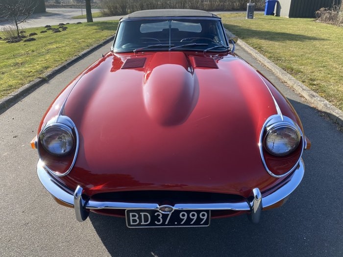OVERZICHT/CONDITION 1969 Jaguar E-Type OTS (Open Twee-Zitter) in goede mechanische en cosmetische staat. De auto behoudt zijn inline 6-cilinder, natuurlijk aangezogen 4,2-liter motor, die 246 pk levert, en een fabrieksmatige 4-versnellings handgeschakelde transmissie. Het voertuig is een ouder, professioneel gerestaureerd exemplaar dat er goed uitziet en zijn klassieke uitstraling behoudt. De auto heeft de periodiek correcte spijlwielen, een zwart leren interieur en slechts 93.749 aangegeven mijlen op de kilometerteller. Het voertuig heeft een actuele Deense registratie en papieren en is in februari 2025 goedgekeurd bij de Deense technische keuring (MOT/TUV), wat zijn uitstekende staat en rijvaardigheid bevestigt. De krachtige 4,2-liter motor is recentelijk onderhouden onder eerder eigendom, waardoor deze soepel en efficiƫnt blijft functioneren. Er is geen rook tijdens het starten of tijdens het rijden. De handgeschakelde transmissie biedt een authentieke rijervaring en schakelt soepel door de versnellingen. Tijdens inspectie en voorbereiding voor verkoop zijn geen lekkages vastgesteld bij de motor en transmissie. De remmen, riemen, koppeling en vering verkeren in goede staat en vertonen geen problemen. De lak en carrosserie verkeren in goede staat. Paneelgaten zijn uniform en voldoen aan de fabriekspecificaties, wat aangeeft dat het paneel goed behouden is. We zien geen roest in de auto of op de carrosserie. Rubber afdichtingen, ramen, chroom en verlichting verkeren allemaal in goede staat. Het softtop dak is in goede staat. Het zwarte leren interieur verkeert in goede staat en is in overeenstemming met de leeftijd en kilometerstand. Er is minimale slijtage zichtbaar op de stoelen en contactpunten, waaronder het dashboard, de deurpanelen en het tapijt, zoals te zien is op de foto's. Meters, schakelaars en elektrische systemen werken allemaal naar behoren. Specificaties: Chassisnummer: 1R8574 Motor: 4.2-liter Transmissie: Handgeschakeld Kilometerstand: 93749 mijlen Kleur: rood met zwart leerinterieur Draadvelgen Inspectie: Geslaagd voor de Deense technische keuring (MOT/TUV) in februari 2025. Registratie: Huidige Deense registratie en documenten Wij kunnen helpen met verzending. Zichtbaar in Langeskov, Denemarken