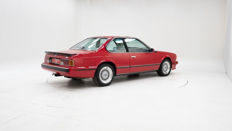 Technische gegevens • Merk: BMW • Model: M6 (E24) • Bouwjaar: 1988 • Motor: 3.453 cc zescilinder M-motor • Transmissie: Manuele versnellingsbak (5 versnellingen) • Aandrijving: Achterwielaandrijving • Kleur: Zinnoberrot Red • Kilometerstand: 12253 km (afgelezen kilometerstand) • Chassisnummer: WBAEE141XJ2560935