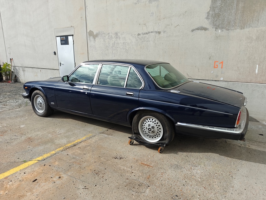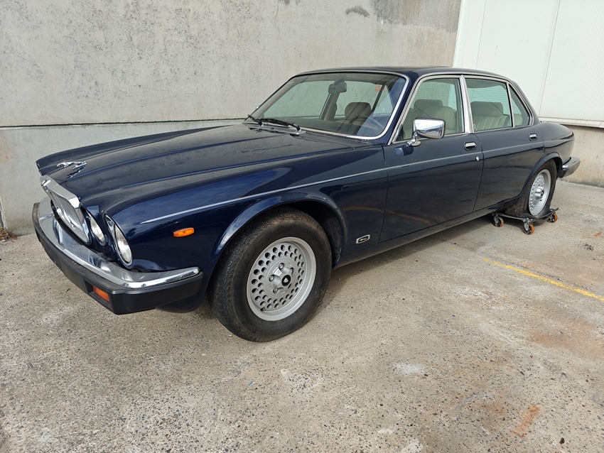 Deze Jaguar XJ6 Series 3 uit 1982 is een klassieke Britse sedan in blauw metallic met een beige lederen interieur. De auto is uitgerust met de bekende 4.2 liter zescilinder lijnmotor en een automatische versnellingsbak. De kilometerstand bedraagt ongeveer 220.000 km.