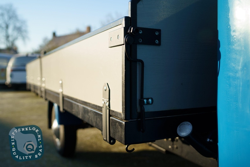 Laadbak: De houten bedvloer is volledig vernieuwd, evenals het metalen frame. De afmetingen van de laadbak zijn 3700 x 2000 mm, met een toegestane laadcapaciteit van 1380 kg. De Teijo is dus zowel een blikvanger als een functionele werkpaard.