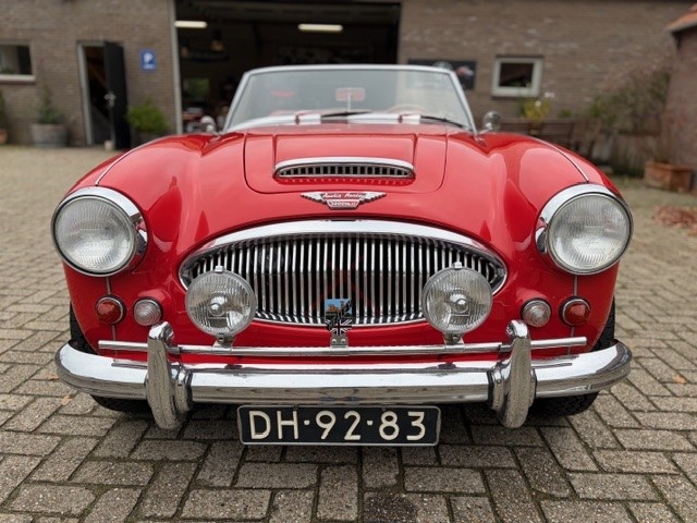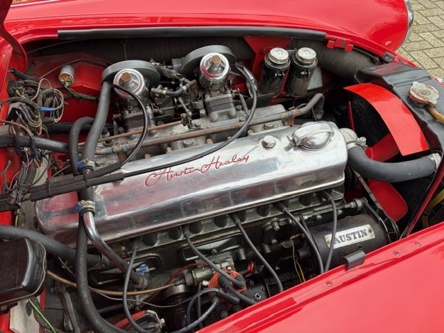 Wat een ongelooflijk mooie auto is dit, de Healey is enkele jaren geleden volledig gereviseerd. De auto is oorspronkelijk in Duitsland geleverd met een aantal mooie Duitse details van deze tijd, dubbele lampen voor en achter en een stuurslot dat andere Healeys normaal gesproken niet hebben. De motor en overdrive versnellingsbak zijn in 2013 volledig gereviseerd. In de jaren die volgden heeft de eigenaar de auto uitstekend laten onderhouden door uitsluitend Nederlandse oldtimerspecialisten. De techniek van de auto is wat je noemt superieur. De auto heeft een nieuwe kabelboom, elektronische ontsteking en een gescheiden remsysteem, dat is een enorme upgrade. De lak en het plaatwerk zijn in uitstekende staat, een werkelijk prachtige auto zonder deuken of een roestplekje. De velgen zijn vervangen door nieuwe chromen Dunlop spaakvelgen. Het chroom rondom is als nieuw. De auto wordt geleverd met een map met alle facturen van alle uitgevoerde werkzaamheden. Alles werkt perfect aan de auto, de zes-in-lijn motor is supersterk, de overdrive versnellingsbak is in perfecte staat, zoals je van een Healey zoals deze mag verwachten. Het interieur is voorzien van leer in de originele bijpassende rode kleur. Het interieur is in uitstekende staat, mooie stoelen in rood leer, het tapijt en de bekleding zijn als nieuw. De softtop is van de beste kwaliteit, zwart mohair, een stof die niet verkleurt. De hoodcover en tonneau zijn gemaakt van vinyl. Lucas 576 rallylampen fleuren de voorkant van deze schoonheid op. Er is een Moto Lita stuurwiel gemonteerd, een periodecorrecte fabrieksoptie. De uitlaat is vervangen door een sportieve zij-uitlaat, die zorgt voor het perfecte Austin Healey-geluid.