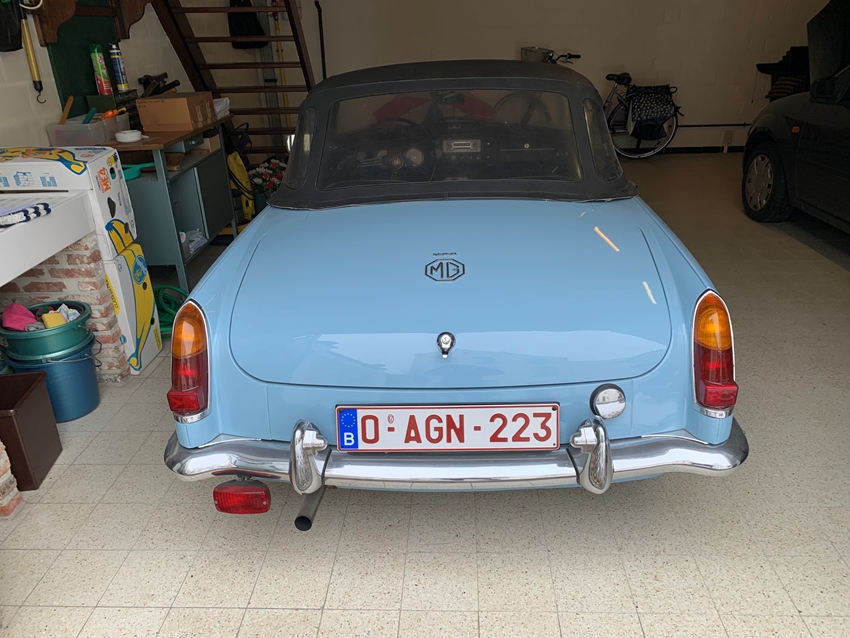 Zeer nette naar originaliteit opgebouwde MGB, uitgevoerd in Iris bleu met zwart interieur.