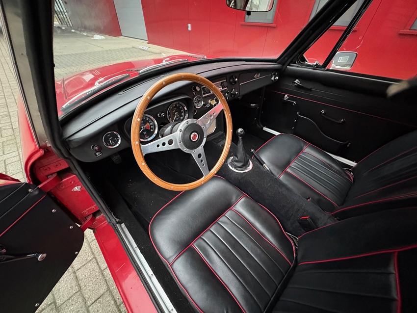 Deze geweldige MGB GT is een originele Europese MG, dus voorzien van het fraaie stalen dashboard en een kilometerteller.