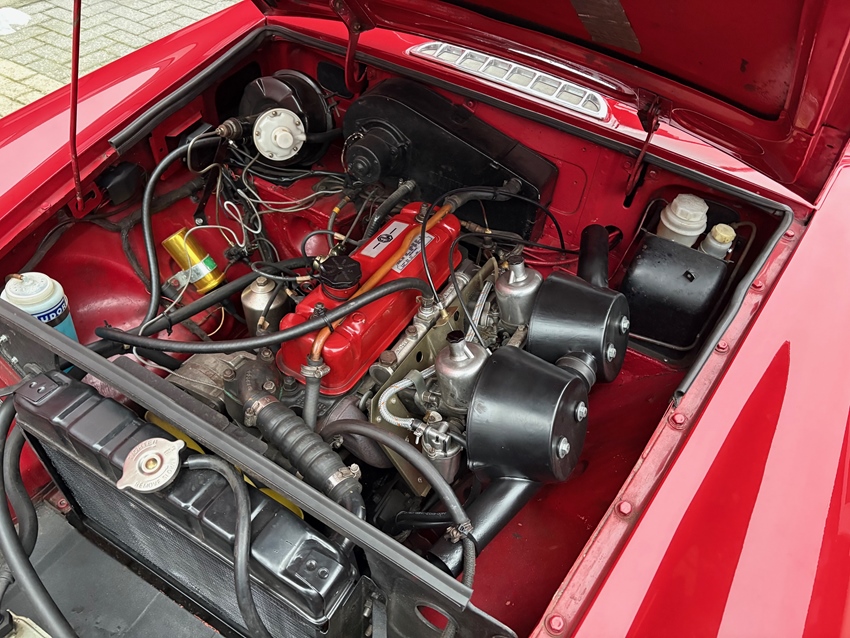 Kleur Tartan Red met een zwart interieur met rode bies. Zwarte vloerbekleding en een nette schone witte hemelbekleding.