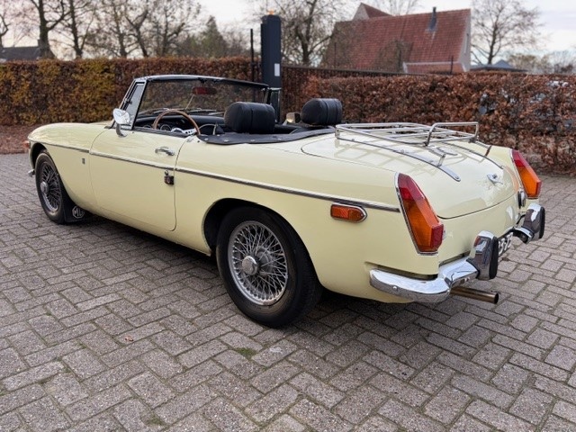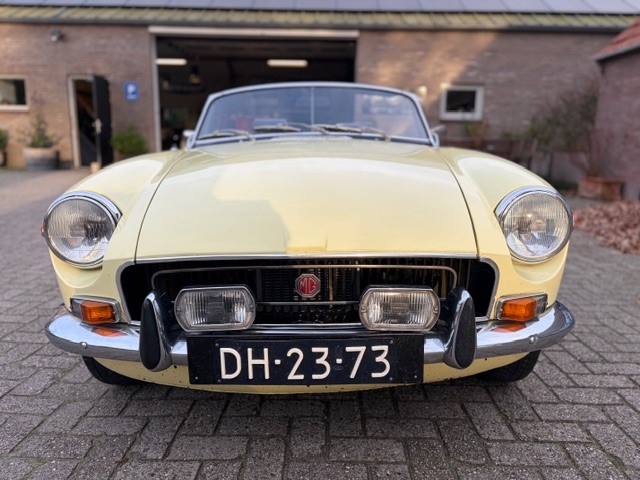Beeldschone MGB met Overdrive uit 1970 in de allermooiste kleur doener te vinden is, Primrose Yellow. Deze perfect rijdende klassieker is de ultieme auto voor iemand die van puur rijden houdt voor een eerlijke prijs. Waar vind je nog zo'n hard en solide exemplaar voor dit bedrag? Deze sublieme auto is in het verleden volledig gerestaureerd, en dat hebben ze op de juiste manier gedaan. Het lakwerk is werkelijk prachtig, de naden zijn allemaal ongelooflijk goed en de auto is volledig roestvrij. De motor en de overdrive versnellingsbak van de auto zijn in het verleden ook volledig gereviseerd, dat betekent dat de techniek van deze MG in onberispelijke staat verkeert. De auto is uitgerust met een oliekoeler, olie temperatuur en oliedrukmeter, kaartleeslamp , aluminium kleppendeksel en extra Kenlowe koelvin. De auto is ongeveer 25 jaar in het bezit geweest van de vorige eigenaar. De auto is in geweldige algehele staat en is door de jaren heen zeer goed onderhouden door twee Britse klassiekerspecialisten in het zuiden van Nederland. Alles werkt perfect zoals het hoort. De motor loopt perfect en de overdrive versnellingsbak schakelt als nieuw. De auto staat op Dunlop spaakwielen in perfecte staat. Een houten origineel Moto Lita stuurwiel past perfect bij deze sportieve auto. Het interieur is zeer netjes en fris, mooie, bijna nieuwe vloerbedekkingen fraaie zwart lederen bekleding. Het chroomwerk rondom is in zeer goede staat. De voorkant wordt opgesierd door twee Lucas verstralers voor de zeldzame fishmouth grille , kenmerkend voor de 1970 MGB. Het is een zeldzame splitbumper, die maar 2 jaar gemaakt is, bijzonder dus. De auto is voorzien van een vinyl packaway softtop en een vinyl hoodcover/ tonneacover. Deze MG is een uitermate nette en degelijke auto, een auto direct van te genieten. Deze MG is voor wie open wil rijden de ultieme klassieker.