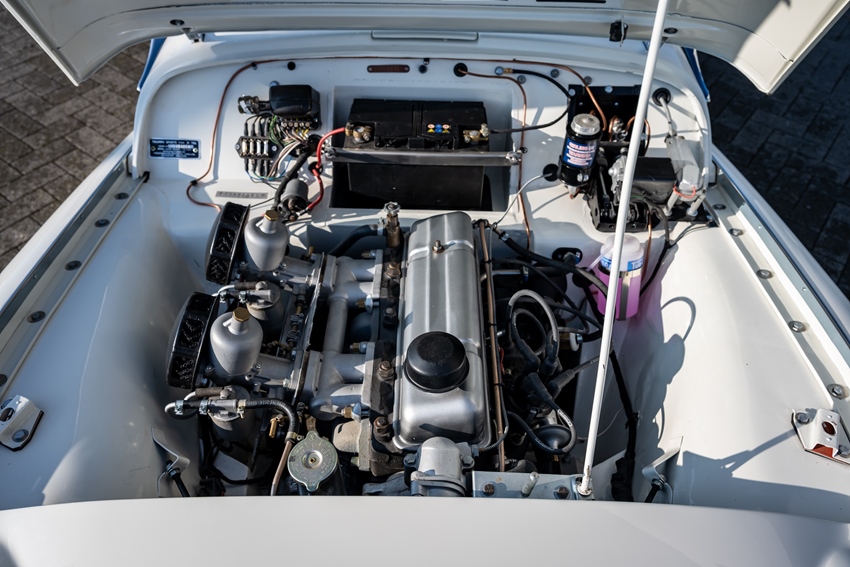 Puur Brits rijplezier, strak als nieuw en met de juiste upgrades. Deze Triumph TR3A uit 1959 is compleet gerestaureerd tot absolute nieuwstaat met perfecte paneelpassingen—precies zoals je het wilt zien bij een top-exemplaar.