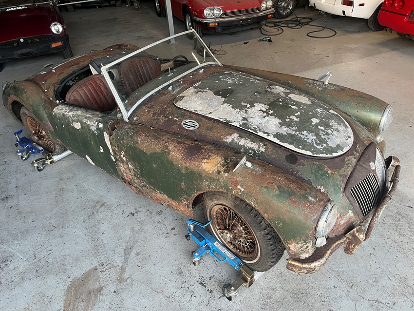 Auto verkeert in ruwe staat met zware roestschade. Chassis en carrosserie zijn technisch restaureerbaar, maar vereisen aanzienlijk las- en plaatwerk. De auto is niet rollend en niet stuurbaar.