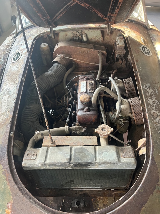 Interieur is origineel en grotendeels compleet. Kapframe wordt meegeleverd. Extra kofferdeksel inbegrepen ter vervanging van het originele exemplaar met doorroesting.