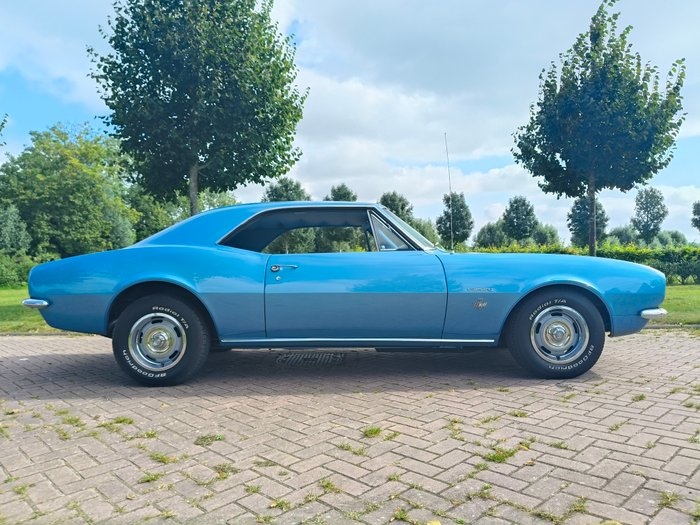 1967 Chevrolet Camaro 327 V8 Automatic ALGEMEEN: Origineel uitgevoerd in de zeldzame en stijlvolle kleur Marina Blue Poly (FF) met een Blue on Blue interieur. Deze Camaro bevindt zich in nieuwstaat en is uitgevoerd met de geliefde 327 V8 in combinatie met de Powerglide automaat en colomn shifter. Een echte klassieker die iedere liefhebber of verzamelaar zal aanspreken. CARROSSERIE & LAKWERK: De carrosserie is strak en roestvrij, met mooie passingen en correcte lijnen rondom. Het lakwerk betreft een beautiful EU paint in de originele kleur Marina Blue Poly (FF). Deze professionele spuitbeurt geeft de auto een diepe glans en een frisse uitstraling. TECHNISCH: Onder de motorkap ligt de originele en krachtige 327 V8, gekoppeld aan de soepele Powerglide automatische transmissie met colomn shifter. Deze aandrijflijn zorgt voor een betrouwbare en plezierige rijervaring, precies zoals een klassieke Camaro hoort te zijn. De auto is voorzien van power disc brakes, waardoor hij niet alleen krachtig accelereert, maar ook uitstekend tot stilstand komt. Het uitlaatsysteem is uitgerust met een double exhaust, wat de auto een diepe en sportieve V8-sound geeft. Al met al verkeert de techniek in uitstekende staat en is de Camaro direct klaar om mee te rijden en van te genieten. INTERIEUR: Het interieur is uitgevoerd in de originele en stijlvolle Blue on Blue kleurstelling. Zowel de stoelen, deurpanelen als vloerbekleding verkeren in uitstekende conditie. Het geheel is comfortabel, fris en passend bij de klassieke uitstraling van deze Camaro. DOCUMENTEN: Wordt geleverd met NL kenteken / EU-papieren. Op verzoek verzorgen wij export papieren voor u. AFHALING: Af te halen in overleg in Appingedam, transport kan eventueel geregeld worden. OVERIGE INFORMATIE: De auto staat op Ralley wheels die de juiste klassieke look compleet maken. Een unieke kans om een originele Chevrolet Camaro V8 te bemachtigen in nieuwstaat, uitgevoerd in de geliefde kleur Marina Blue Poly (FF) met Blue on Blue interieur. Een icoon dat niet alleen een solide investering is, maar ook garant staat voor puur rijplezier!