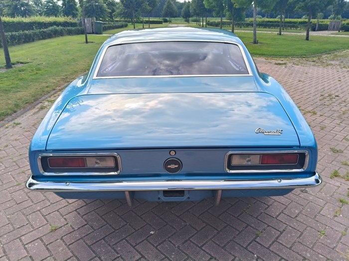 1967 Chevrolet Camaro 327 V8 Automatic ALGEMEEN: Origineel uitgevoerd in de zeldzame en stijlvolle kleur Marina Blue Poly (FF) met een Blue on Blue interieur. Deze Camaro bevindt zich in nieuwstaat en is uitgevoerd met de geliefde 327 V8 in combinatie met de Powerglide automaat en colomn shifter. Een echte klassieker die iedere liefhebber of verzamelaar zal aanspreken. CARROSSERIE & LAKWERK: De carrosserie is strak en roestvrij, met mooie passingen en correcte lijnen rondom. Het lakwerk betreft een beautiful EU paint in de originele kleur Marina Blue Poly (FF). Deze professionele spuitbeurt geeft de auto een diepe glans en een frisse uitstraling. TECHNISCH: Onder de motorkap ligt de originele en krachtige 327 V8, gekoppeld aan de soepele Powerglide automatische transmissie met colomn shifter. Deze aandrijflijn zorgt voor een betrouwbare en plezierige rijervaring, precies zoals een klassieke Camaro hoort te zijn. De auto is voorzien van power disc brakes, waardoor hij niet alleen krachtig accelereert, maar ook uitstekend tot stilstand komt. Het uitlaatsysteem is uitgerust met een double exhaust, wat de auto een diepe en sportieve V8-sound geeft. Al met al verkeert de techniek in uitstekende staat en is de Camaro direct klaar om mee te rijden en van te genieten. INTERIEUR: Het interieur is uitgevoerd in de originele en stijlvolle Blue on Blue kleurstelling. Zowel de stoelen, deurpanelen als vloerbekleding verkeren in uitstekende conditie. Het geheel is comfortabel, fris en passend bij de klassieke uitstraling van deze Camaro. DOCUMENTEN: Wordt geleverd met NL kenteken / EU-papieren. Op verzoek verzorgen wij export papieren voor u. AFHALING: Af te halen in overleg in Appingedam, transport kan eventueel geregeld worden. OVERIGE INFORMATIE: De auto staat op Ralley wheels die de juiste klassieke look compleet maken. Een unieke kans om een originele Chevrolet Camaro V8 te bemachtigen in nieuwstaat, uitgevoerd in de geliefde kleur Marina Blue Poly (FF) met Blue on Blue interieur. Een icoon dat niet alleen een solide investering is, maar ook garant staat voor puur rijplezier!