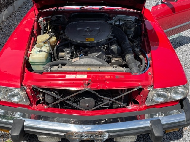 De basis van de wagen is goed en keihard geen zichtbare roest te zien met goede harde bodem en wielkasten hij is origineel fabriek af signal rood uitgevoerd met zwart leder zie MB Data report , hij heeft ook als zeldzame optie verwarmde zetels en de miles zijn gedocumenteerd met een carfax history document !