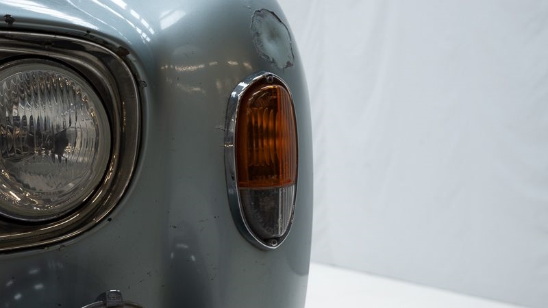 Restauratie en originaliteit: te restaureren Carrosserie: roestplekken aanwezig Lakwerk: slecht, te herschilderen Onderzijde: laswerk aan de bodem noodzakelijk, zeer vuil Banden: goede staat, gaan nog enkele jaren mee Aandacht banden: wieldoppen ontbreken Interieur, kap en tapijten: sporen van hevig gebruik, kap gescheurd en te vervangen, niet-originele tapijten Ontbrekend: reservewiel en afdekplaat reservewiel Controle chassisnummer: origineel en goed leesbaar (linker balk bovenaan voor schutbord) Motorruimte: zeer vuil, oppervlakkige roest Motor: loopt, afstelling nodig, onderhoud noodzakelijk, uitlaat is afgebroken Vloeistoffen en onderhoud: onderhoud noodzakelijk Batterij: goede staat, kan nog enkele jaren mee Koppeling: sporen van slijtage Versnellingsbak: sporen van slijtage Remmen: afstelling nodig, herstelling noodzakelijk, hoofdrempompen lekken Handrem: werkt goed Elektriciteit: ruitenwissers en verwarming werken Verlichting: herstelling noodzakelijk, nummerplaatverlichting en mistlichten vooraan werken niet Ophanging en assen: werken goed