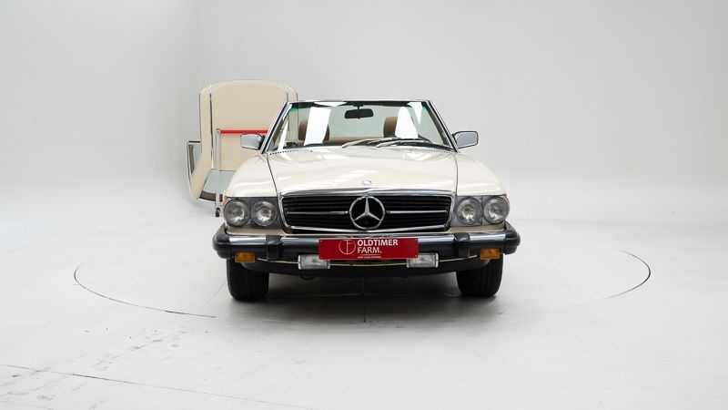 Merk: Mercedes-Benz Model: 380 SL Bouwjaar: 1982 Datum eerste inschrijving: 01/07/1982 Motor: 3.839 cc V8 Transmissie: Automatische versnellingsbak Kleur: Ivory Kilometerstand: 99.039 km (afgelezen kilometerstand) Chassisnummer: WDB10704512017339