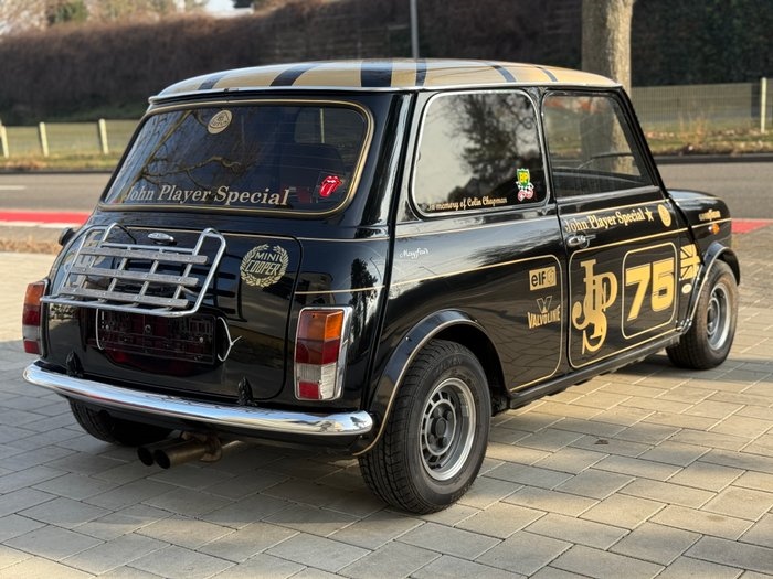 Hier presenteren wij onze Mini Cooper 1000 uit het jaar 1983. De Mini is een oudere restauratie uit de jaren negentig. Het ontwerp op de auto is geplakt en kan zonder resten worden verwijderd. Het voertuig heeft vorig jaar de technische keuring zonder gebreken doorstaan. De kilometers zijn tot en met 2023 traceerbaar. De kilometers zijn slechts afgelezen en hiervoor wordt geen garantie gegeven. Koetswerk en lak Het gehele voertuig werd tijdens de eerdere restauratie opnieuw gelakt. Er zijn geen roestbellen in de lak of diepere krassen. De rubberen afdichtingen en het chroom zijn in orde. De onderbodem heeft lichte roest, maar er zijn geen laswerkzaamheden nodig. Het interieur verkeert in een verzorgde staat zonder scheuren of gaten. De stof is nog de originele en is nooit opnieuw bekleed. De rode veiligheidsgordels zijn een extra accessoire. Technische staat De motor lekt een beetje olie. De auto rijdt en remt zonder problemen en de versnellingsbak schakelt zoals het hoort. Het start goed, zowel koud als warm. De motor draait rustig en er zijn geen ongebruikelijke geluiden. Er werd nooit in de auto gerookt. De remmen zijn in goede staat De banden hebben een volledig profiel, uit 2015, geen scheuren of beschadigingen. Het stuur heeft geen speling en de auto rijdt rechtuit. Er is slechts weinig roest aan de onderbodem; er zijn geen gaten of zwaarwegende beschadigingen. We hebben geen onderhoudsgeschiedenis. Die is door de vorige eigenaar zelf uitgevoerd. Er is een Abarth-uitlaatsysteem gemonteerd. Daartoe is een toelating aanwezig. De Duitse documenten zijn aanwezig en volledig. In het verleden waren er acht eerdere eigenaren. Er zijn twee sleutelzinnen. Graag leveren wij het voertuig wereldwijd. Aarzel niet en dien bij ons een transportverzoek in.