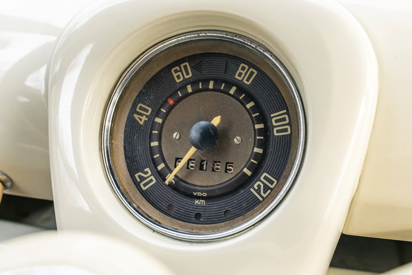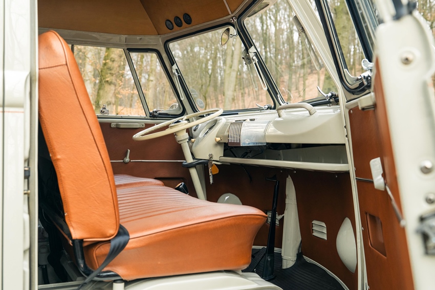 Het interieur is volledig uitgerust met een op maat gemaakt Westfalia SO42-interieur, lederen stoelen en deurpanelen, een stuurwiel in de stijl van een herenauto met openslaande deuren, safari-ramen en een unieke, met pinstriping aangebrachte "nefarious"-gordellijn.