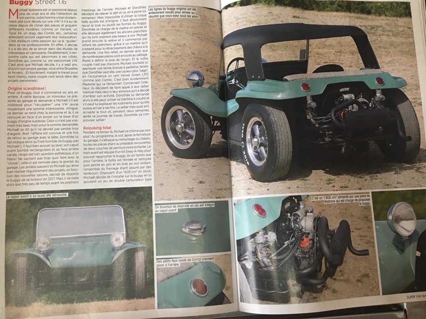 Gewoon in nieuwstaat. Lak, bekleding, velgen, banden, alles is nieuw. Gespoten in de schitterende VW kleur velvet green, Enkei velgen met achterop de nostalgische Firedstone Wide Oval banden, Hurst shifter, Chromen koplampen, dubbele carburateurs en mooie periodiek correct stuurtje en kuipstoeltjes. Duits kenteken met ingekort chassis vermeld in de papieren.