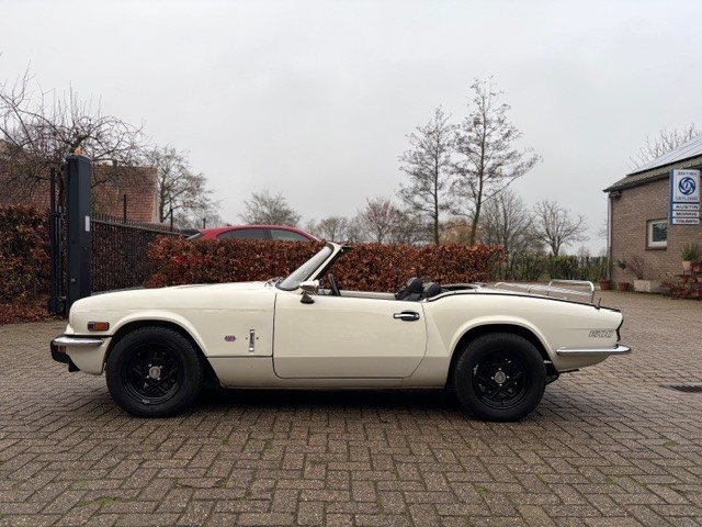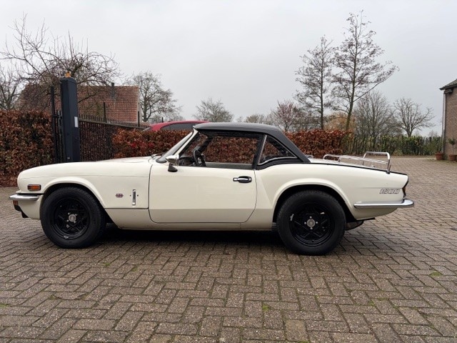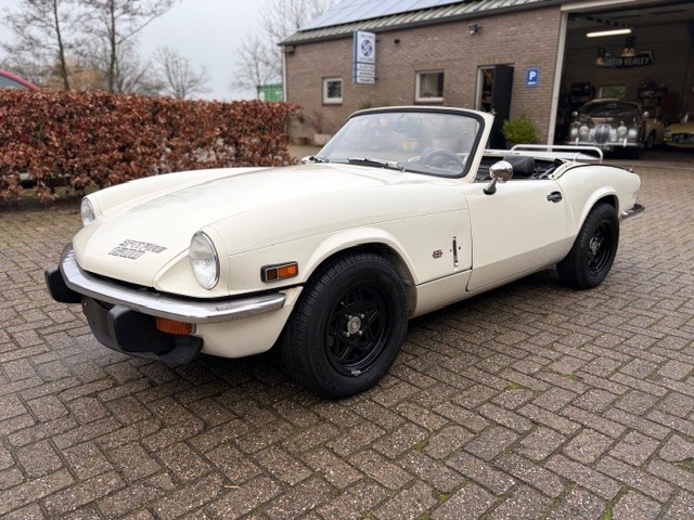 Deze Spitfire is een fantastische auto om mee te rijden, hij ziet er prachtig uit, een mooie klassieker uit de jaren 70. Hij is iets sportiever gebouwd dan standaard, met een hardtop die de auto een soort coupé-look geeft. Samen met de brede, zwarte Revolution-velgen is het een sportieve klassieker. Het lakwerk is zeer netjes, het wit oogt bijzonder fris en sportief, vooral in combinatie met de zwarte bekleding, zwarte velgen, zwarte hardtop en zwarte vinyl softtop. Haal de hardtop eraf en je rijdt in een klassieke cabriolet, de softtop is er nog steeds voor het geval het gaat regenen. De lak heeft een paar kleine imperfecties, maar niets ernstigs. De auto ziet er bijzonder mooi uit en is roestvrij. Het interieur is netjes, de stoelen zijn mooi en comfortabel met goede schuimvulling, de deurpanelen en de vloerbedekking zijn allemaal in hetzelfde bijpassende zwart uitgevoerd. Deze Spitfire heeft een mooi houten dashboard en een lederen sportstuur. Ook onder de motorkap ziet hij er netjes uit en is hij goed onderhouden. De techniek is in uitstekende staat. De motor en versnellingsbak zijn in zeer goede conditie. De auto heeft net zijn jaarlijkse onderhoudsbeurt gehad en we hebben een nieuwe uitlaatdemper gemonteerd. Het chassis is zeer solide en roestvrij. De auto heeft nu Franse papieren, maar is oorspronkelijk geregistreerd in Nederland, dus het is heel gemakkelijk om het originele Nederlandse kenteken terug te krijgen. Wie wil er een sportieve Britse klassieker voor een zacht prijsje?