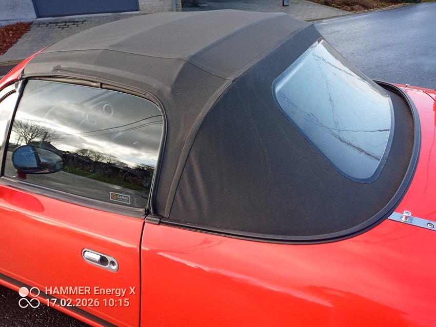 De wagen werd volledig aangepakt. Dorpels achteraan professioneel hersteld en de wagen werd binnen en buiten volledig herlakt. Een nieuwe Softtop werd geplaatst. Alle riemen en onderhoud in 2025 uitgevoerd