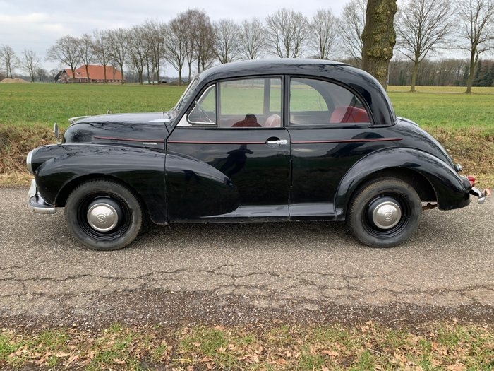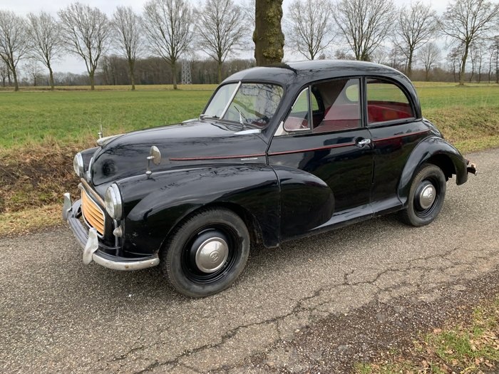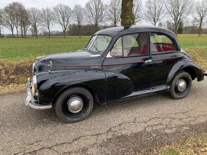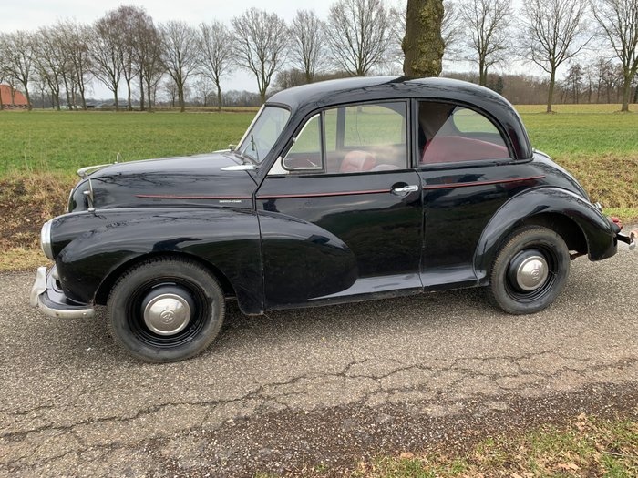 ALGEMEEN Deze erg leuke Morris Minor is van 1956 en is dus alweer 70 jaar oud In 1991 kwam hij naar Nederland, en heeft dus een Nederlandse registratie. Hij is redelijk goed gebleven, en heeft vanwege wat langere stilstand in een droge ruimte nu eerst een start-up service nodig. De accu is zwak, met een startbooster slaat hij wel snel aan, en is eigenlijk dan prima rijdbaar. Vanwege zijn leeftijd is de auto in Nederland vrijgesteld voor APK en wegenbelasting. CARROSSERIE De Morris is van origine nieuw geleverd in deze kleur, en ziet er nog redelijk netjes uit, met ruimte voor verbetering, zoals bijvoorbeeld een nieuwe laklaag op de grille. Zie de foto's. De originele velgen zijn in nette gebruikte toestand, originele Morris wieldoppen die het hele plaatje helemaal af maken De onderzijde is jaren geleden aangepakt en in redelijk goede staat. TECHNIEK De laatste jaren is de auto zeer weinig gebruikt, hij heeft dus een nieuwe accu en een start-up service nodig. De motor loopt erg netjes, trekt ook prima, de remmen werken goed, en ook het schakelen en sturen gaat prima. De snelheidsmeter werkt niet, en semaforen zijn aanwezig, ter vervanging zijn ook “normale” knipperlichten gemonteerd. INTERIEUR Het interieur is in redelijke conditie, inclusief de deurpanelen en de vloermatten. De hemelbekleding is enige tijd geleden vernieuwd, en keurig. DOCUMENTEN Het betreft hier dus originele rechtsgestuurde Morris met Nederlandse papieren. Hij kan met EU Export documenten worden geleverd, (tegen meerprijs van 50 euro) zodat een nieuwe koper de Morris eenvoudig kan laten registreren. TRANSPORT De auto staat in Hengevelde, Nederland en kan hier vanzelfsprekend worden opgehaald. De auto kan tegen meerprijs van 150 euro binnen Nederland worden bezorgd (excl. De Waddeneilanden) Voor de buitenlandse bieders : Verkoper kan de auto relatief goedkoop in de hele EU laten bezorgen door een professionele transporteur.