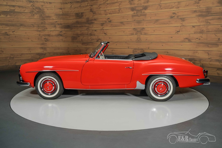 Mercedes-Benz 190 SL in concoursstaat te koop Het rode lakwerk geeft deze Mercedes-Benz een krachtige en stijlvolle uitstraling die perfect contrasteert met de zwarte soft top en bijbehorende cover. De klassieke whitewalls en originele stalen velgen met wieldoppen versterken het authentieke karakter van deze roadster. Het zwart lederen interieur sluit naadloos aan bij het exterieur en verkeert in een sublieme staat. Het fraaie dashboard met klassieke klokken, het ivoorkleurige stuurwiel, Becker Europa radio en de verfijnde details ademen pure jaren ’60 klasse. Alles aan deze 190 SL straalt vakmanschap en exclusiviteit uit – een unieke kans voor de verzamelaar of liefhebber die op zoek is naar een top gerestaureerde klassieker.