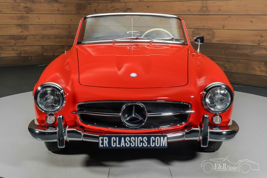 Mercedes-Benz 190 SL in concoursstaat te koop Het rode lakwerk geeft deze Mercedes-Benz een krachtige en stijlvolle uitstraling die perfect contrasteert met de zwarte soft top en bijbehorende cover. De klassieke whitewalls en originele stalen velgen met wieldoppen versterken het authentieke karakter van deze roadster. Het zwart lederen interieur sluit naadloos aan bij het exterieur en verkeert in een sublieme staat. Het fraaie dashboard met klassieke klokken, het ivoorkleurige stuurwiel, Becker Europa radio en de verfijnde details ademen pure jaren ’60 klasse. Alles aan deze 190 SL straalt vakmanschap en exclusiviteit uit – een unieke kans voor de verzamelaar of liefhebber die op zoek is naar een top gerestaureerde klassieker.