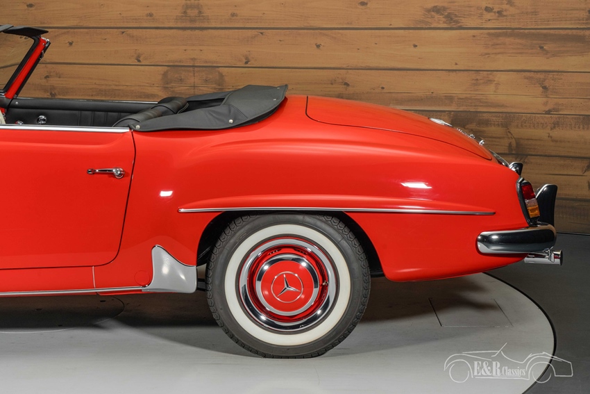 Mercedes-Benz 190 SL in concoursstaat te koop Het rode lakwerk geeft deze Mercedes-Benz een krachtige en stijlvolle uitstraling die perfect contrasteert met de zwarte soft top en bijbehorende cover. De klassieke whitewalls en originele stalen velgen met wieldoppen versterken het authentieke karakter van deze roadster. Het zwart lederen interieur sluit naadloos aan bij het exterieur en verkeert in een sublieme staat. Het fraaie dashboard met klassieke klokken, het ivoorkleurige stuurwiel, Becker Europa radio en de verfijnde details ademen pure jaren ’60 klasse. Alles aan deze 190 SL straalt vakmanschap en exclusiviteit uit – een unieke kans voor de verzamelaar of liefhebber die op zoek is naar een top gerestaureerde klassieker.