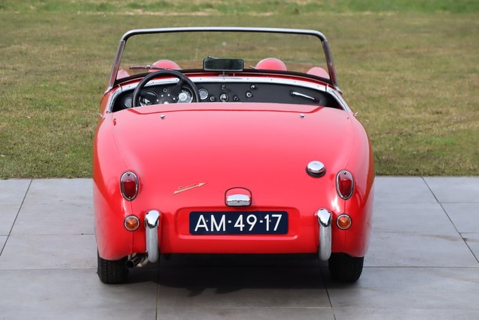 Austin Healey Sprite MkI 1959 "Frogeye" • Body-off gerestaureerd in Nederland rond 2006 • In bezit van dezelfde Nederlandse eigenaar van 1997 tot 2026 • Tonneaucover • Rib case versnellingsbak (later type en veel sterker) • Schijfremmen voorzijde • Afkomstig uit collectie van Austin-Healey liefhebber HISTORIE/DOCUMENTATIE De iconische "Frogeye" Austin Healey: een auto van slechts 650 KG. Om de kosten laag te houden is de slogan "Less is More" meer dan toepassing. Juist deze simpelheid maakt de auto ontzettend leuk om mee te rijden. Dit exemplaar betreft een MkI geleverd in 1959 en is daarmee één van de vroegst geleverde exemplaren. In 1997 is de auto verscheept van het zonnige Californië (VS) naar Nederland, waar de auto compleet body-off is gerestaureerd en altijd in bezit is geweest van dezelfde eigenaar tot 2026. Het eindresultaat is een opvallend uitgevoerde Sprite. Een zeer uitgebreide map is bij de auto aanwezig met importdocumenten, onderhoudsfacturen, historie, foto's en nog veel meer: de documentatie is door de jaren heen zorgvuldig bewaard gebleven. Na de restauratie heeft de auto slechts 645 mijl gereden. EXTERIEUR De auto is uitgevoerd in een fraaie, knalrode kleur 'Ford Radiant Red'. Het lakwerk verkeert nog in een zeer goede staat. De carrosseriedelen sluiten mooi op elkaar aan. Ook de onderzijde van de auto ziet er zeer strak uit. Ook de verlichting verkeert in een frisse staat. Het chroomwerk en de rubbers hebben normale gebruikerssporen. De stalen wielen zijn voorzien van originele verchroomde wieldoppen en goede banden. INTERIEUR Het interieur is uitgevoerd in zwart kunstleer met verstelbare stoelen. Ook dit interieur is in nette staat, zonder beschadiging en slechts met minimale gebruikerssporen. Hij is voorzien van leuke en handige accessoires zoals een dik Moto-Lita stuurwiel en een hoofdstroomschakelaar. Ook is een reservewiel en een tonneaucover aanwezig. Tevens zijn frames van de zijruitjes aanwezig. TECHNISCH De 0.9-liter 4-cilinder motor is gekoppeld aan een handgeschakelde 4-versnellingsbak en maakt het een feest om mee te rijden: gevoelsmatig snel, wendbaar en puur. De motor is gereviseerd in 2004, waarvan een factuur een aanwezig is. De polyester motorkap is licht waardoor de auto beter rijdt. Ook is deze motorkap minder onderhoudsgevoelig en deze klapt volledig naar voren open zodat de motor makkelijk bereikbaar is. Aanzienlijk technische verbeteringen zijn de 'rib case' versnellingsbak (later type en veel sterker) en schijfremmen aan de voorzijde. De auto rijdt goed, maar heeft in de afgelopen jaren weinig gereden waardoor een servicebeurt voor het nieuwe seizoen wenselijk is.