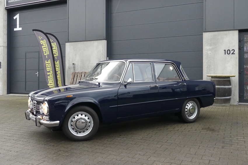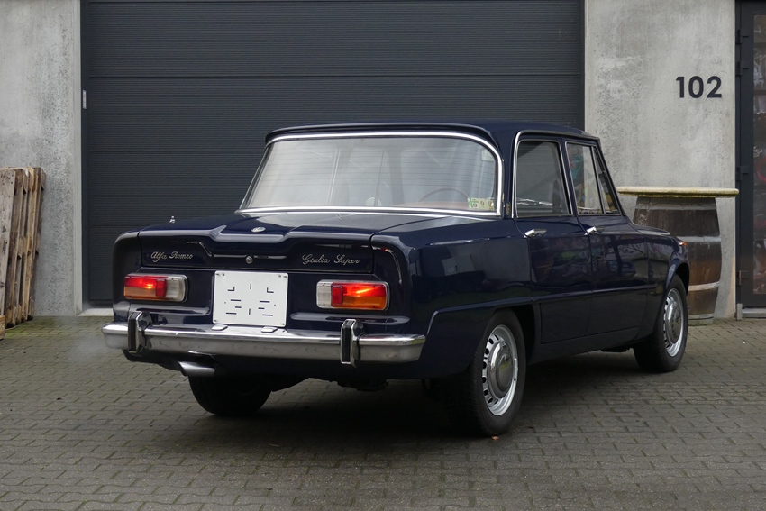 Deze 1600 Super Biscione is een zeldzamere en bijzondere uitvoering van de karaktervolle Giulia. Deze Alfa werd nieuw uitgeleverd in Italië en is in 1997 naar Nederland uitgevoerd. In 2014 is ze vervolgens naar België gekomen. De wagen is zowel technisch als cosmetisch in picobello conditie en bovendien erg goed gedocumenteerd, alle facturen van onderhoud en wisselstukken zijn aanwezig en dit sinds 1997. De mooie kleurencombi (Blu Olandese op Cognac) en de specifieke kenmerken van een Super Biscione maken van deze Giulia een erg aantrekkelijke verschijning waar de echte Alfa liefhebber gemakkelijk verliefd op kan worden!