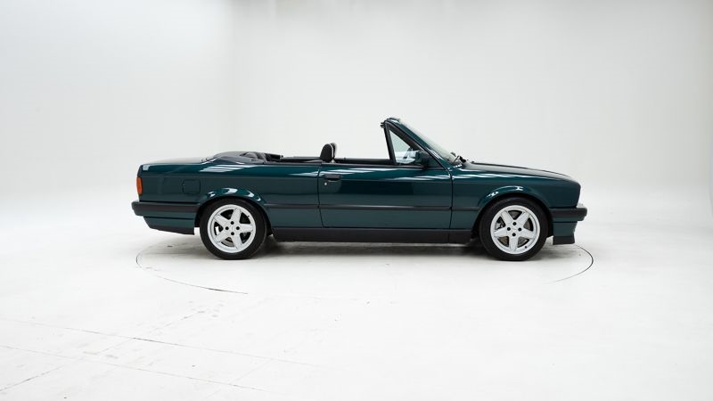 • Manuele 5-versnellingsbak voor een authentieke rijbeleving • 1.796 cc viercilinder – 318is-motor gemonteerd i.p.v. originele 318i • Oudere originele staat met eerlijke gebruikssporen • Klassieke BMW E30 Cabriolet in zeldzame Lagunengrün Metallic • Belgische inschrijvingsbewijzen