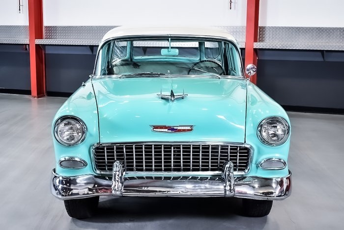Je bent hier: Oldtimers te koop > Oldtimer auto's > 1955 Chevrolet Bel Air 4 Door Wagon - 6 cylinder Blue Flame