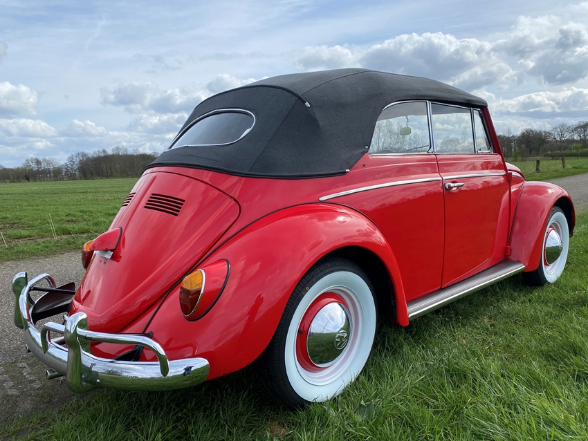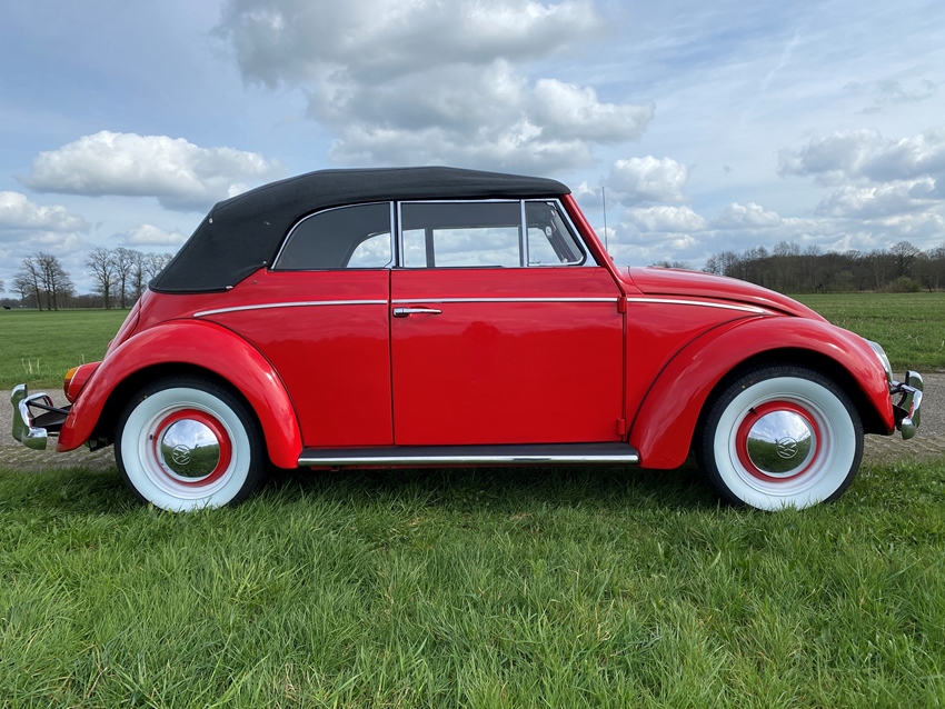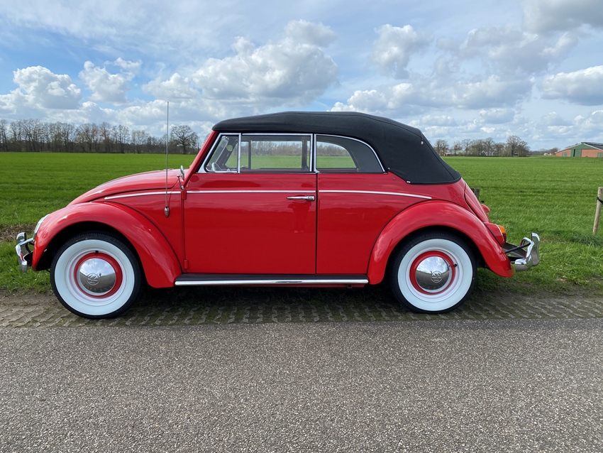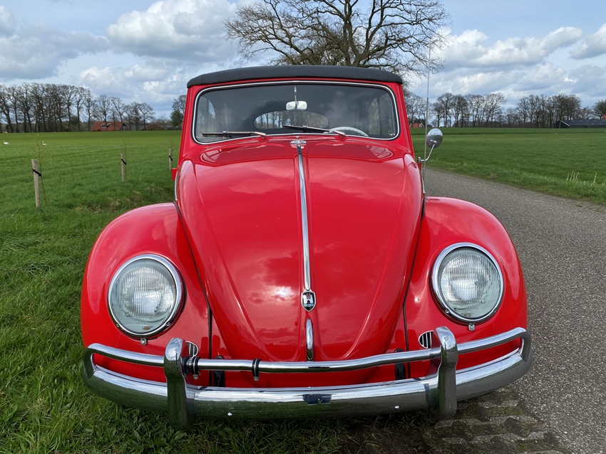 Top gerestaureerde Kever Cabriolet uit 1962 in de kleur rood, volledig en perfect gespoten.Met taxatie rapport van 50.000 euro