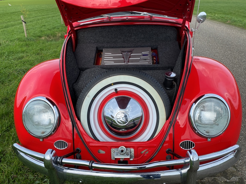 Binnenin vind je een prachtige stereoset, naadloos geïntegreerd om de tijdloze uitstraling van deze Kever te behouden. Bovendien is de auto uitgerust met een alarmsysteem met afstandsbediening voor extra gemoedsrust en veiligheid.