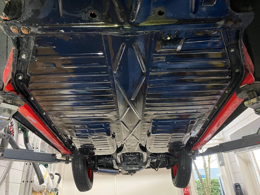 De bodem van deze Kever is niet alleen zorgvuldig gepoedercoat voor bescherming, maar ook om te schitteren als nieuw. Het interieur is opnieuw bekleed met echt leer, waardoor het comfort en de luxe van de klassieke Kever behouden blijven. Het tapijt lijkt gloednieuw, en de wieldoppen en velgen zijn perfect aangevuld met echte white wall banden, wat zorgt voor een opvallend contrast.