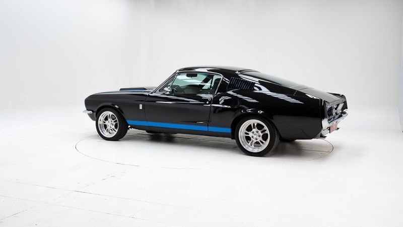 Merk: Ford Model: Mustang Fastback V8 Bouwjaar: 1968 Motor: 4.948 cc V8 Transmissie: Manuele 5-versnellingsbak Kleur: Black – Blue Kilometerstand: 52.258 (afgelezen) Chassisnummer: 8R02J125273 Stuurpositie: Links gestuurd Documenten: Belgische inschrijvingsbewijzen