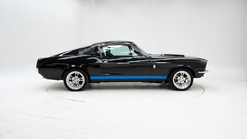 Merk: Ford Model: Mustang Fastback V8 Bouwjaar: 1968 Motor: 4.948 cc V8 Transmissie: Manuele 5-versnellingsbak Kleur: Black – Blue Kilometerstand: 52.258 (afgelezen) Chassisnummer: 8R02J125273 Stuurpositie: Links gestuurd Documenten: Belgische inschrijvingsbewijzen