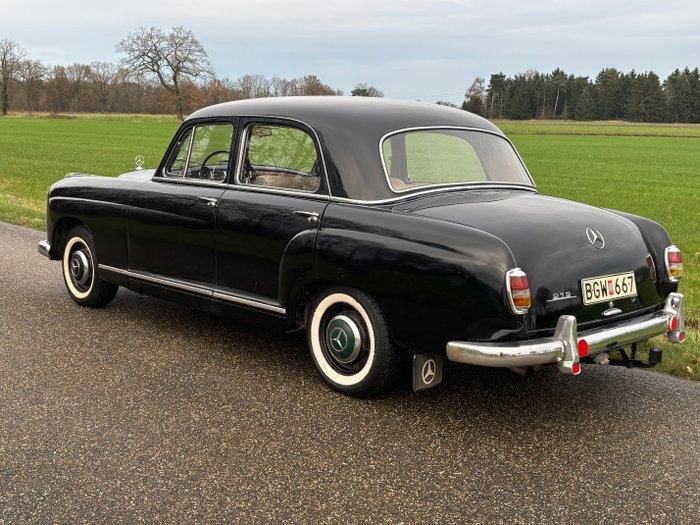 Een klassieke Mercedes 219, dit model is bekend als W105, en ook als de “grote Ponton” met 6 cilinder lijnmotor. Op zich zeldzaam, het is een model gepositioneerd tussen de kleinere W120 Ponton serie en de grotere S 220 klasse. De vader van de laatste Zweedse eigenaar kocht de auto in 1963; op dat moment had de auto sinds de bouw in 1959 slechts 1 eigenaar gehad. Sinds de familie de auto kocht, zijn alle bonnen bewaard en is vrijwel elke tankbeurt gedocumenteerd. Elke zomer reisde de familie op vakantie naar de Tornevallei in Zweden en ze maakten ook reizen met de auto naar Nederland en Engeland. Halverwege de jaren tachtig werd een nieuwere auto aangeschaft en de Mercedes stond grotendeels stil in een verwarmde garage. De familie kocht ook een donorauto, die veel van de reserveonderdelen leverde die bij de Mercedes worden meegeleverd. De Mercedes heeft tot enkele weken geleden altijd in Zweden gereden, onlangs is hij naar Nederland geëxporteerd Documenten: De auto kan tegen meerprijs van 50 euro met Zweedse EU Export documenten worden geleverd, zodat een eventuele buitenlandse nieuwe eigenaar de auto gemakkelijk in zijn/haar land kan registreren Carrosserie: Ergens in de jaren 80 onderging de auto roestreparaties en werd hij opnieuw gespoten. Aluminium binnenschermen werden gemaakt om het risico op nieuwe roestvorming te verminderen en er werd een roestvrijstalen uitlaatsysteem gemonteerd, dat er vandaag de dag nog steeds onder zit. Onderzijde is redelijk goed, wel wat smerig met modder etc, en er is ongetwijfeld verbetering mogelijk. Technisch: In 1995 nam de laatste Zweedse eigenaar het familie-erfstuk over en sindsdien heeft hij er slechts ongeveer 5.000 km mee gereden. De brandstofpomp en radiateur zijn een paar jaar geleden gereviseerd en in 2025 zijn de remschoenen, wielcilinders, hoofdremcilinder en carburateur gereviseerd. De 219 remt prima, stuurt goed, het starten gaat wat aarzelend, (choke beter afstellen) maar als hij een beetje op bedrijfstemperatuur is functioneert hij prima. Bij de Mercedes worden diverse dozen met reserveonderdelen, documentatie bestaande uit bonnen en keuringsrapporten (zie foto's) en drie sets sleutels geleverd. Interieur: Na verloop van tijd werd de hemelbekleding lelijk, dus naaide de eigenaar een nieuwe hemelbekleding die nog steeds in de auto zit. Hij installeerde ook oprolbare veiligheidsgordels voor extra veiligheid. Het interieur is netjes, met gebruikssporen. De brandstofmeter werkt een beetje aarzelend. De verkoper heeft vele contacten in binnenland en buitenland, en kan u helpen aan adressen waar eventuele nieuwe / gebruikte onderdelen worden verkocht. Transport: De auto staat in Hengevelde, Nederland en kan hier vanzelfsprekend worden opgehaald. De auto kan tegen meerprijs van 150 euro (excl BTW) binnen Nederland worden bezorgd (excl. De Waddeneilanden) Verkoper kan de auto relatief goedkoop in de hele EU laten bezorgen door een professionele transporteur.