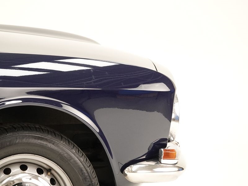 De carrosserie werd professioneel herlakt en presenteert zich mooi, met lichte sporen van gebruik die passen bij een klassiek voertuig dat correct werd gebruikt. Er is een klein roestblaasje aanwezig aan de rechtervoorzijde van de deur. De onderzijde is origineel en goed, met recente werkzaamheden uitgevoerd, al zijn er vetsporen zichtbaar.