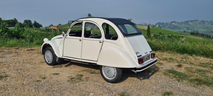 Prachtige en zeldzame originele Citroën 2CV Perrier, 600 cc, een van de maar 1000 geproduceerde exemplaren. De auto is in 2020 volledig gerestaureerd wat carrosserie en mechaniek betreft, motor herbouwd met vervanging van zuigers en cilinders, kop opnieuw geventileerd/geplat, nokkenas vervangen, brandstofpomp nieuw, reniflard (olieventiel) vernieuwd, carburateur vernieuwd, warmtewisselaars nieuw, en meer. 12 Volt koelunit met 6 flesjes Perrier water in miniatuurflessen. Wagen voorzien van het Citroën-certificaat dat de authenticiteit van het Perrier-model bevestigt, ingeschreven bij Riasc. ASI-inschrijving met CRS Certificaat van Historische Relevantie bijgewerkt in het kentekenbewijs. Beschikbare dubbele sleutels, gebruiks- en onderhoudsboekje en documentatie over de geschiedenis van de Perrier-limited serie. Deze 2CV is januari 1989 en sinds de restauratie tot op heden heeft hij (~17.900 km) gereden, hij verkeert in perfecte staat en is klaar voor gebruik zonder werkzaamheden. Op de weg rijdt hij zeer goed en is hij erg leuk. Het bekleding van de stoelen is het originele, in skai imitatie Jean, in redelijke toestand maar vertoont gebruikssporen. Er is echter ook een volledige Jeans-stoelbekleding beschikbaar in uitstekende toestand. De plastic wielkappen met Perrier-tekst zijn niet origineel, hoewel ze erg vergelijkbaar zijn. DOCUMENTATIE Bijgeleverd Italiaanse documenten. Wagen zichtbaar in Broni, Italië.
