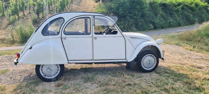 Prachtige en zeldzame originele Citroën 2CV Perrier, 600 cc, een van de maar 1000 geproduceerde exemplaren. De auto is in 2020 volledig gerestaureerd wat carrosserie en mechaniek betreft, motor herbouwd met vervanging van zuigers en cilinders, kop opnieuw geventileerd/geplat, nokkenas vervangen, brandstofpomp nieuw, reniflard (olieventiel) vernieuwd, carburateur vernieuwd, warmtewisselaars nieuw, en meer. 12 Volt koelunit met 6 flesjes Perrier water in miniatuurflessen. Wagen voorzien van het Citroën-certificaat dat de authenticiteit van het Perrier-model bevestigt, ingeschreven bij Riasc. ASI-inschrijving met CRS Certificaat van Historische Relevantie bijgewerkt in het kentekenbewijs. Beschikbare dubbele sleutels, gebruiks- en onderhoudsboekje en documentatie over de geschiedenis van de Perrier-limited serie. Deze 2CV is januari 1989 en sinds de restauratie tot op heden heeft hij (~17.900 km) gereden, hij verkeert in perfecte staat en is klaar voor gebruik zonder werkzaamheden. Op de weg rijdt hij zeer goed en is hij erg leuk. Het bekleding van de stoelen is het originele, in skai imitatie Jean, in redelijke toestand maar vertoont gebruikssporen. Er is echter ook een volledige Jeans-stoelbekleding beschikbaar in uitstekende toestand. De plastic wielkappen met Perrier-tekst zijn niet origineel, hoewel ze erg vergelijkbaar zijn. DOCUMENTATIE Bijgeleverd Italiaanse documenten. Wagen zichtbaar in Broni, Italië.