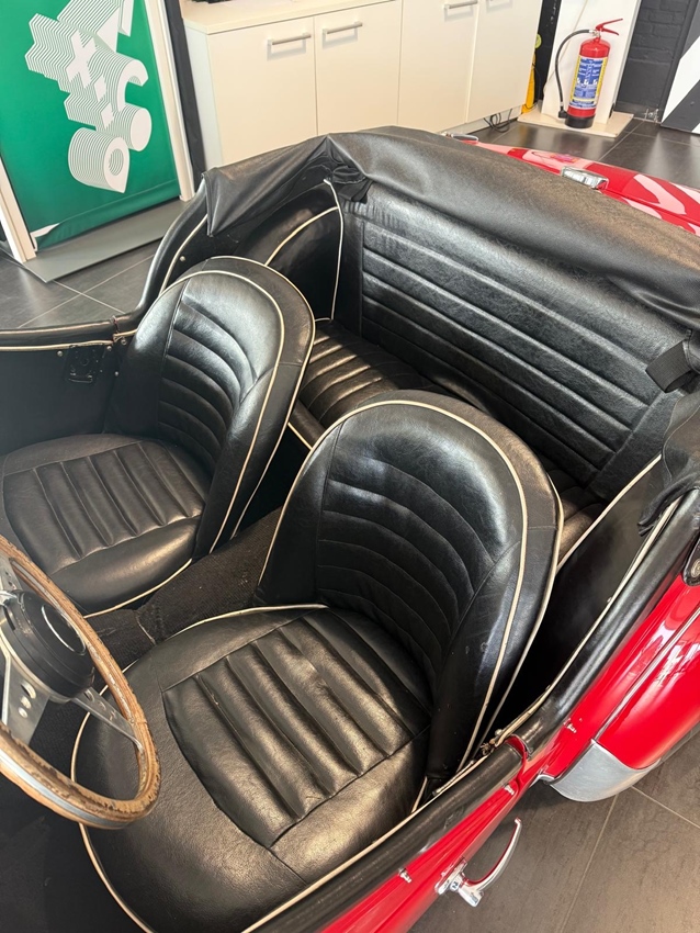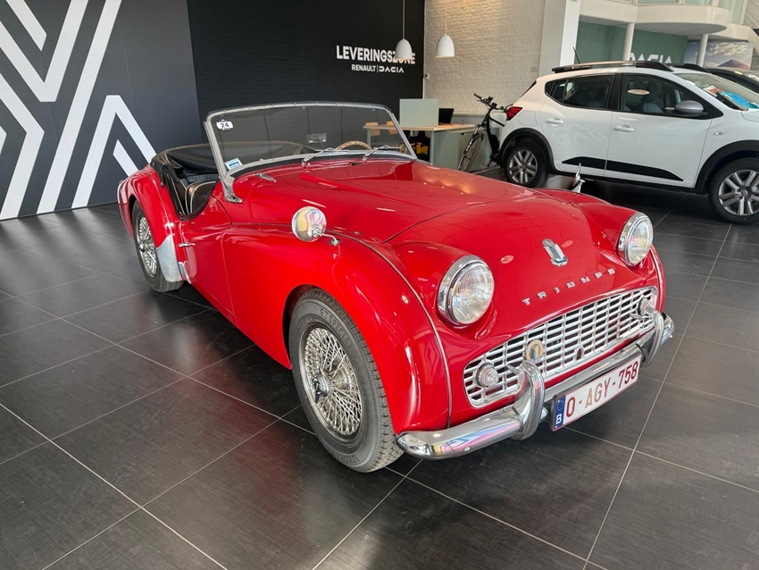 HEEL MOOIE EN ZELDZAME TR3A IN DE KLEUR ROOD MET ZWARTE BEKLEDING EN TONEAU COVER .GEBOUWD IN BELGIE BIJ IMPERIA IN NESSONVAUX .