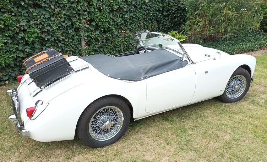 Vele opties: Chroom spaakwielen, nieuwe cabriokap, bagagedrager in chroom met unieke MG koffer, tonneaucover, windwings, sunvisors, verchroomde mistlampen, tijd gerelateerde radio, elektronische ontsteking en extra koelingsventilator.
