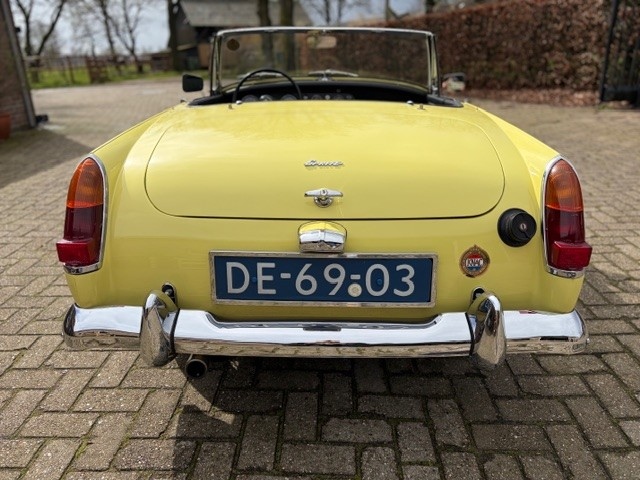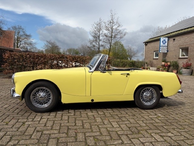 Splendid Austin Healey Sprite from 1965 in Fiesta yellow, go and find a more bright ,shiny 60's colour. Step into a world of driving pleasure with the Austin Healey Sprites, a classic British roadster from the 1960s. This iconic car, with its sleek lines and distinctive front grille, promises an exhilarating ride and head-turning style.This beuatifull car is restored some years ago by a real classic car enthousiast and is stil in mint condition. The engine is full rebuild back than, the 1098 engine is still a new one, the same for the gearbox, the ribacase is rebuild, superb maintained and still in excellent condition.At the same time it got a new clutchkit, and new master and slave cylinder.